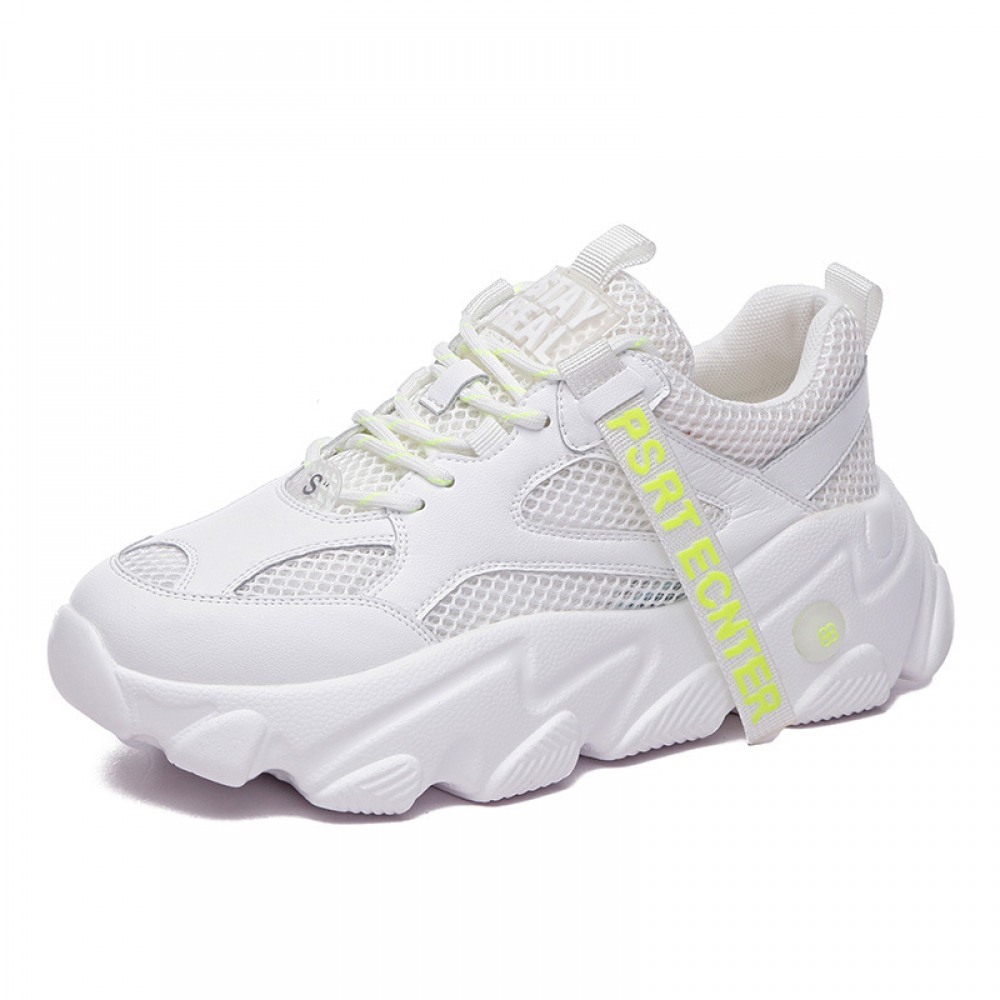 Women's Summer Breathable Thick-Soled Small Mesh Sports Casual Shoes White