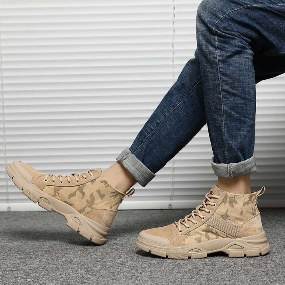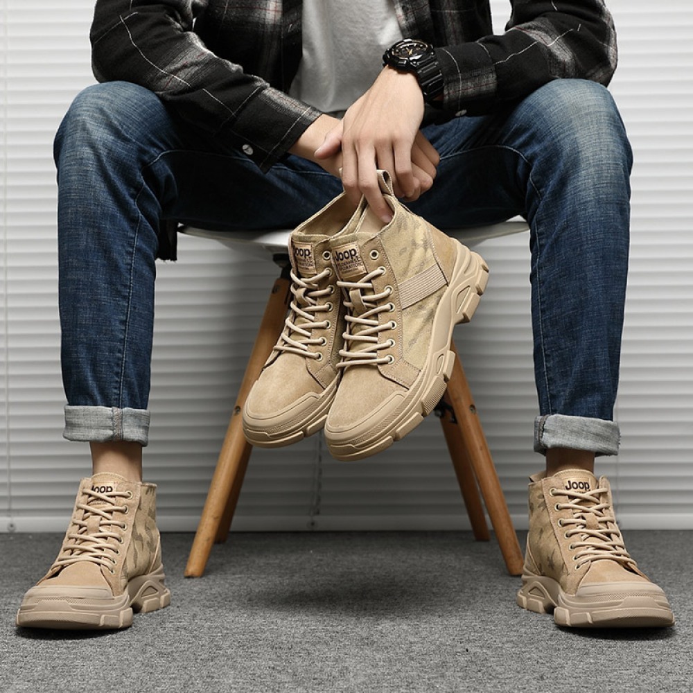 Men's New British Short Mid-Cut Boots Trendy High-Top Military Martin Boots