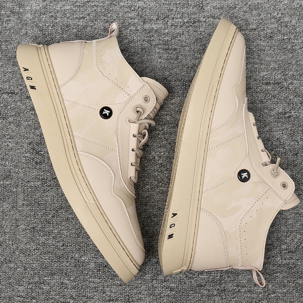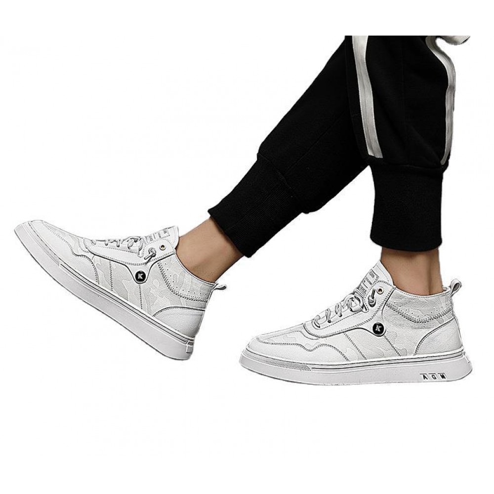 White Men's Autumn New Flat Bottom Shoes Leather High Top Casual Shoes