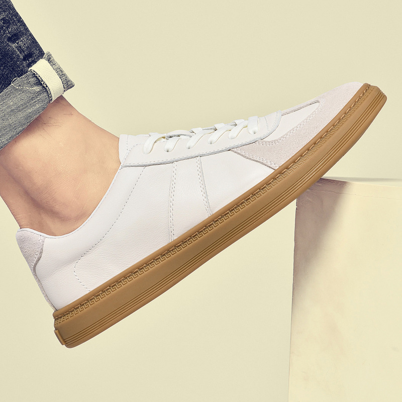 Spring New Men's Casual Sports Shoes TrendLow Top White Leather Shoes