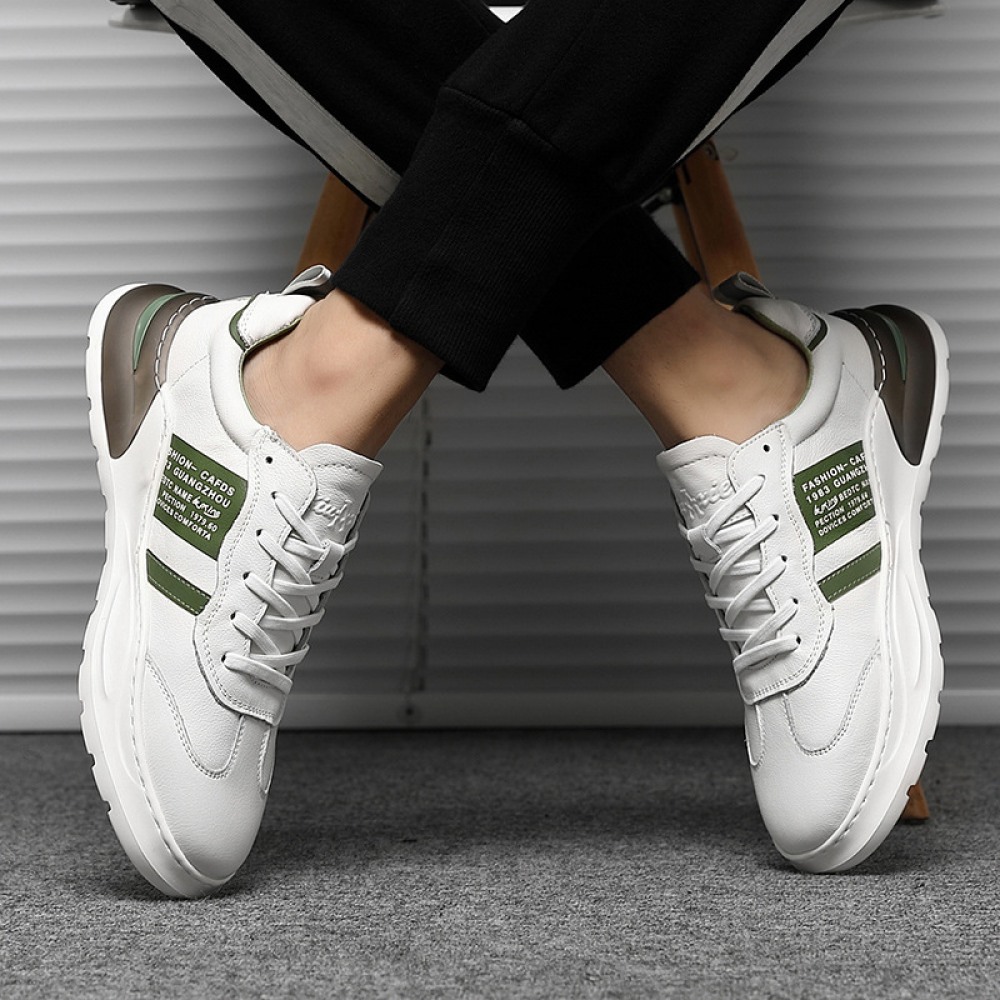 Autumn New White Men's Casual Thick-Soled Trend Sports Leather Shoes