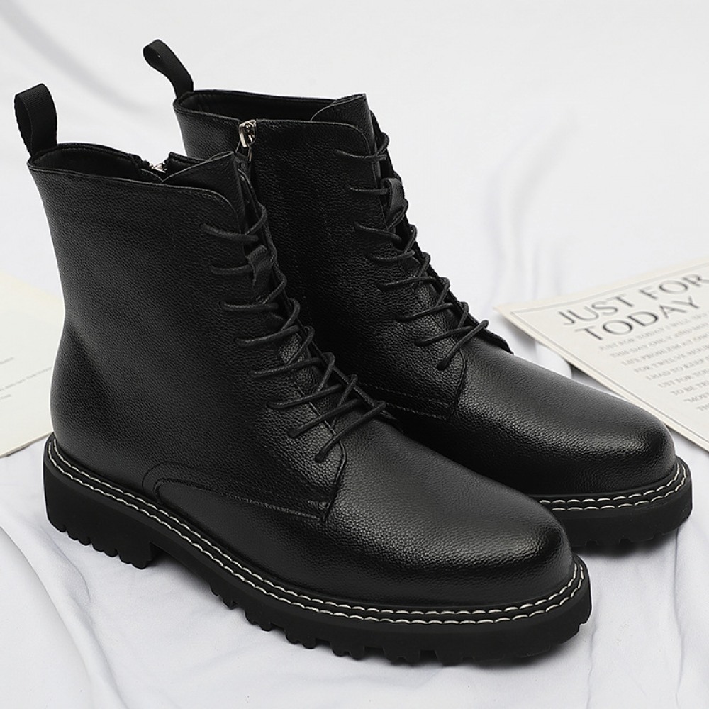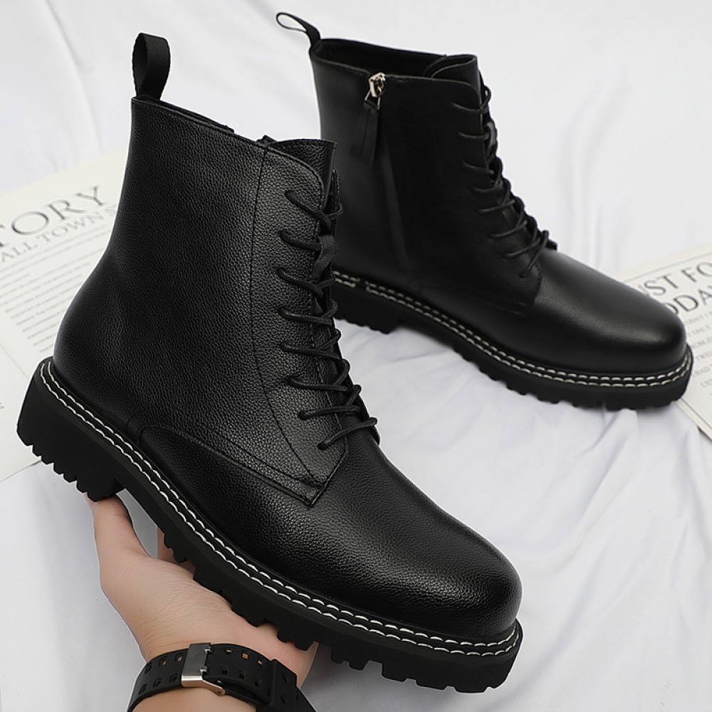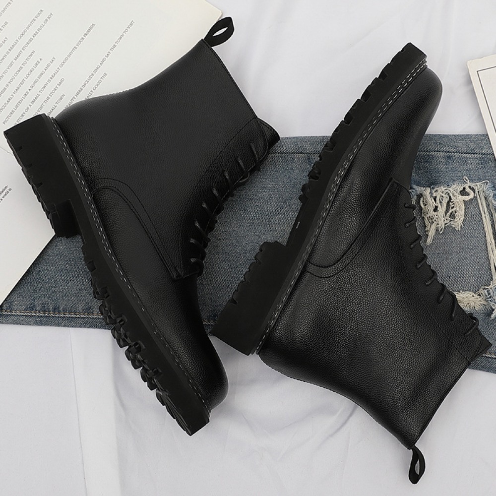 Autumn New Men's Leather Boots Front Lace-Up Low-Heel Martin Boots